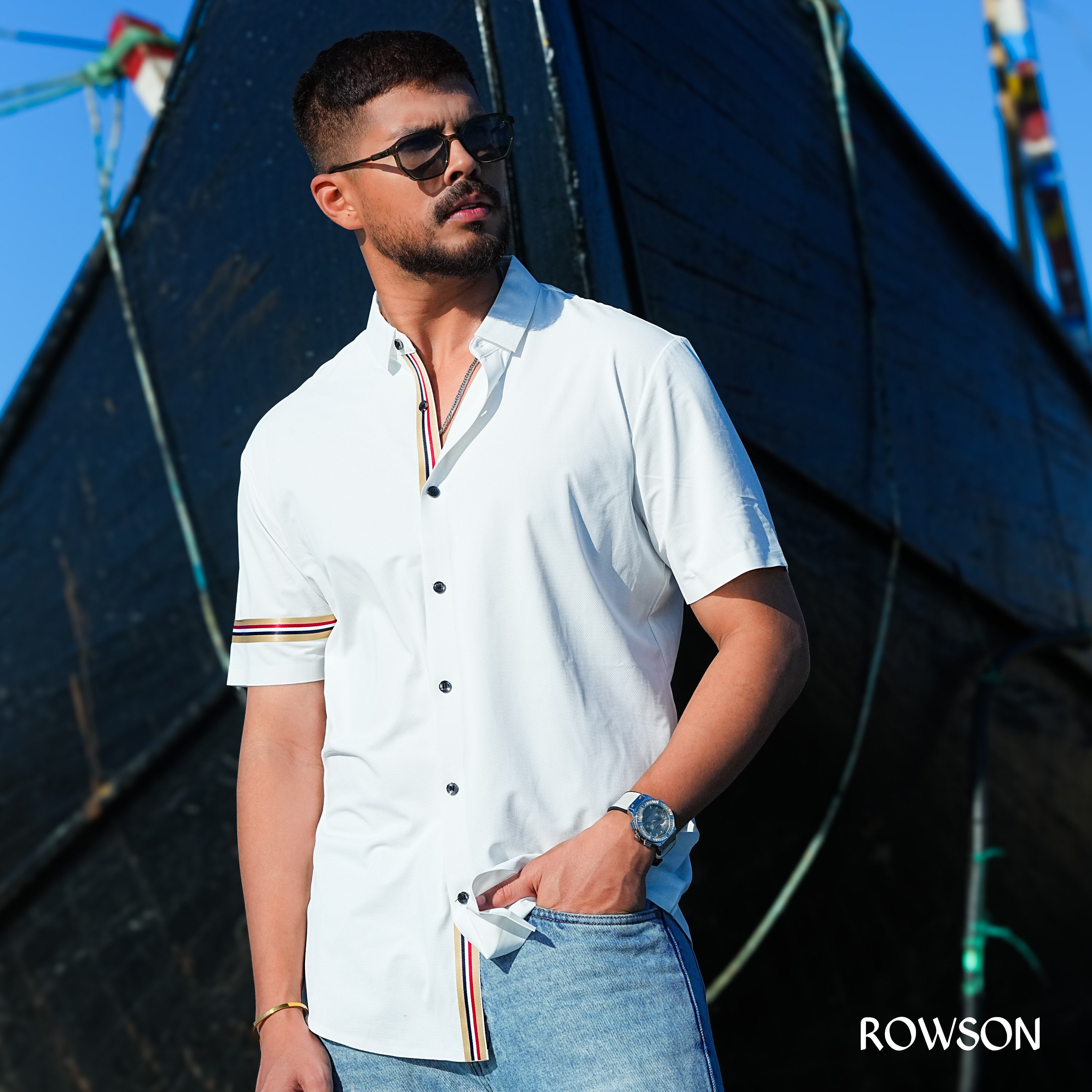 Regular price ৳ 1,870.00 BDTSale price ৳ 1,870.00 BDT Regular priceUnit price / perElevate your smart-casual game with this premium white half shirt, tailored for the modern man who prefers clean sophistication with a bold edge. Designed with a...
